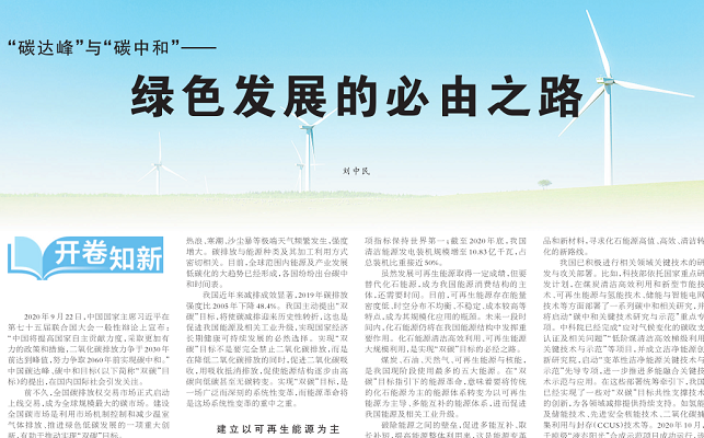 8月13日,中國(guó)科學(xué)院大連化學(xué)物理研究所劉中民院士受邀在《人民日?qǐng)?bào)》“開卷知新”欄目發(fā)表《綠色發(fā)展的必由之路》主題文章,介紹“雙碳”知識(shí)概念及我國(guó)實(shí)現(xiàn)“雙碳”目標(biāo)的必要性、緊迫性和可實(shí)施路徑等。