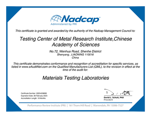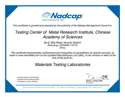 金屬所檢測中心歷時(shí)近一年,通過立項(xiàng)宣導(dǎo)、人員培訓(xùn)、體系文件修訂、多次現(xiàn)場評估等,持續(xù)進(jìn)行嚴(yán)格的日常管理和質(zhì)量控制,無論是管理體系、設(shè)備資源還是人員能力均滿足Nadcap對航空類產(chǎn)品的檢測要求。檢測中心于2021年5月31日至6月5日接受了Nadcap-MTL現(xiàn)場評審, 申報(bào)的16項(xiàng)檢測能力全部通過認(rèn)證,并于7月28日正式獲頒證書。