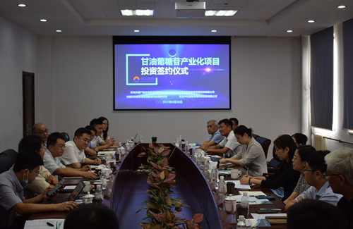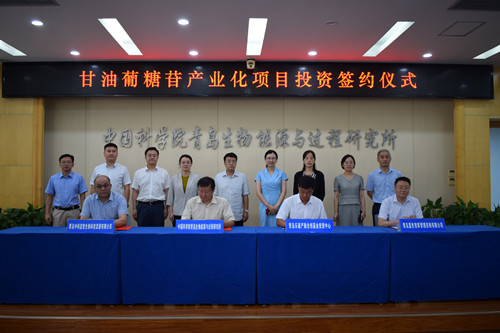 8月26日上午,樂(lè)通資本-藍(lán)色智庫(kù)-中科院青島能源所-中科藍(lán)智甘油葡糖苷產(chǎn)業(yè)化項(xiàng)目投資簽約儀式在研究所舉行。青島市科技局基礎(chǔ)研究處處長(zhǎng)李欣,嶗山區(qū)政府副區(qū)長(zhǎng)許哲,嶗山區(qū)委組織部副部長(zhǎng)廉潔,嶗山區(qū)科創(chuàng)委科技創(chuàng)新部副部長(zhǎng)賈文生,樂(lè)通資本董事長(zhǎng)鄒晨陽(yáng)、副董事長(zhǎng)張少雄,藍(lán)色智庫(kù)(青島魯信馳騁創(chuàng)投)總經(jīng)理王奎旗,青島能源所黨委書(shū)記彭輝、副所長(zhǎng)呂雪峰、黨委副書(shū)記許輝,中科藍(lán)智董事長(zhǎng)張凱、總經(jīng)理段仰凱,研究所微生物制造工程中心、知識(shí)產(chǎn)權(quán)與成果轉(zhuǎn)化處等有關(guān)部門(mén)人員出席簽約儀式,共同見(jiàn)證四方簽約成功,達(dá)成千萬(wàn)級(jí)戰(zhàn)略投資。