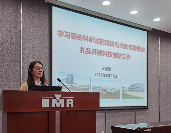 紀(jì)檢與審計(jì)處副處長(zhǎng)(主持工作)王殿珊作《學(xué)習(xí)領(lǐng)會(huì)科研誠(chéng)信建設(shè)有關(guān)的部署要求扎實(shí)開(kāi)展科技創(chuàng)新工作》報(bào)告