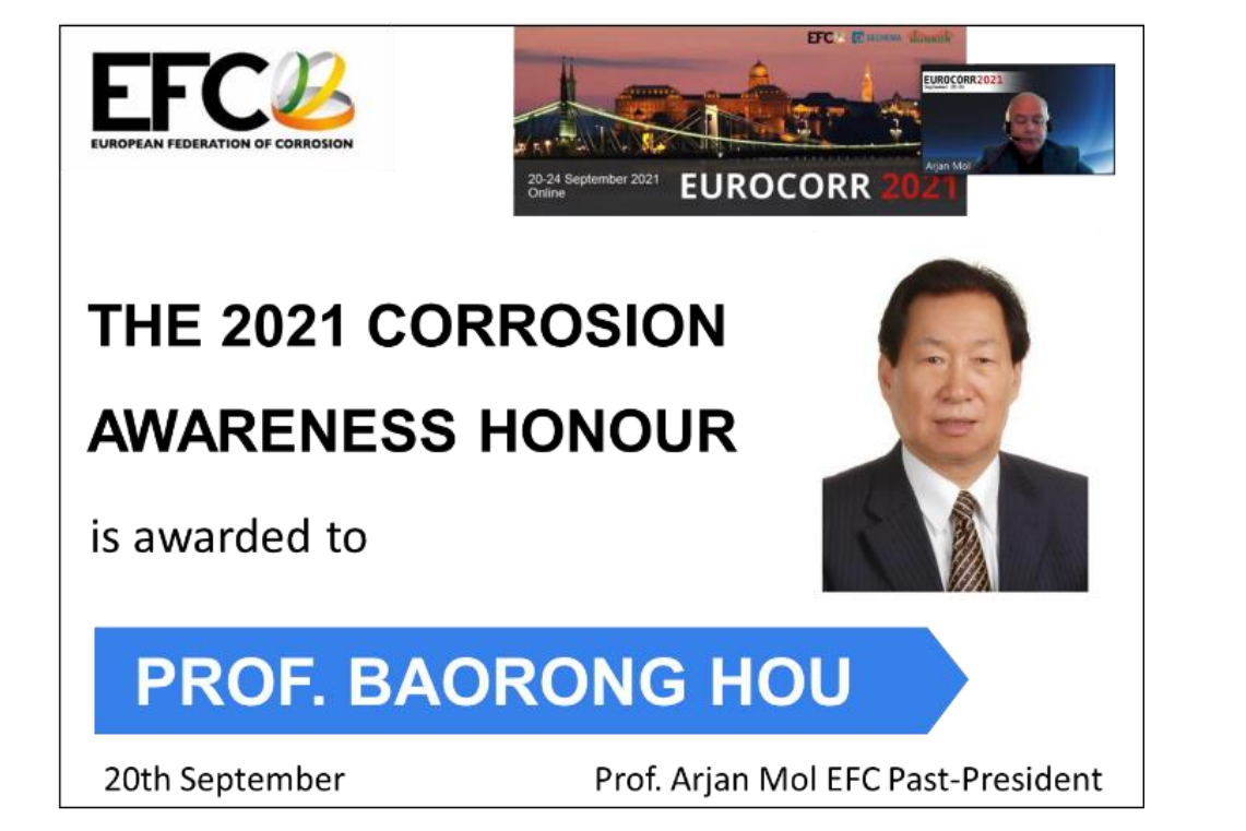 世界“腐蝕成就獎(jiǎng)”于2021年首次設(shè)立,由世界腐蝕組織發(fā)起,與歐洲腐蝕聯(lián)盟及中國腐蝕與防護(hù)學(xué)會聯(lián)合舉辦,旨在授予具有重大影響力,顯著提高了政府、科技界、工業(yè)界和公眾對腐蝕及防腐重要性的認(rèn)知,并在腐蝕控制領(lǐng)域做出杰出貢獻(xiàn)的科學(xué)家。該獎(jiǎng)項(xiàng)由世界腐蝕組織、歐洲腐蝕聯(lián)盟及中國腐蝕與防護(hù)學(xué)會的委員等組成的國際評審委員會評議,不接受個(gè)人申報(bào)。經(jīng)多輪投票和評議,一致推選侯保榮院士為2021年度世界“腐蝕成就獎(jiǎng)”唯一獲獎(jiǎng)?wù)摺?/p>