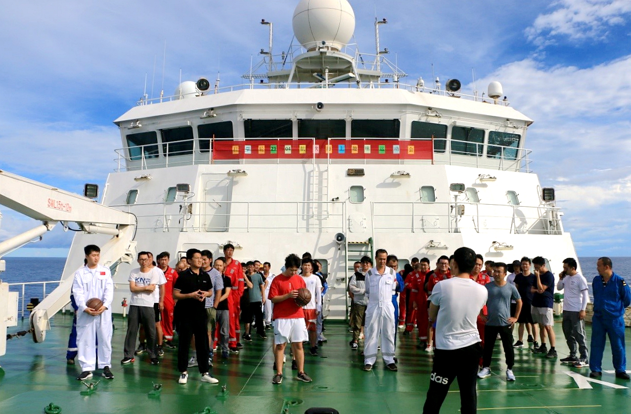 為慶祝中華人民共和國成立72周年,進(jìn)一步豐富海上科考船隊員的文體生活,強化大家的健身意識,以健康的體魄投身海上科考,10月3日至4日,正在西太平洋執(zhí)行科考任務(wù)的“科學(xué)”號考察船,利用航渡間隙舉行了別開生面的趣味運動會。