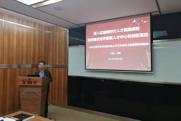 隨后,徐巖書記作了題為“學(xué)習(xí)貫徹習(xí)近平總書記在中央人才工作會(huì)議上的重要講話精神”的主題報(bào)告。徐巖書記從“中央工作人才工作會(huì)議”名稱的變化、“八個(gè)堅(jiān)持”戰(zhàn)略舉措和堅(jiān)定人才自信等方面,深入講解了習(xí)近平總書記在中央人才工作會(huì)議上的重要講話為新時(shí)代人才工作謀劃的宏偉藍(lán)圖。他還介紹了院黨組《關(guān)于認(rèn)真學(xué)習(xí)貫徹習(xí)近平總書記在中央人才工作會(huì)議上重要講話精神的通知》要求,并就金屬所貫徹會(huì)議精神提出了具體舉措。