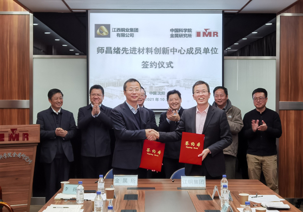 雙方圍繞期刊合作、人才引進和培養(yǎng)、稀貴金屬提純、銅加工等項目合作事項進行了深入交流討論。會議期間舉行了江西銅業(yè)集團有限公司加盟師昌緒先進材料創(chuàng)新中心成員單位的簽約儀式。
