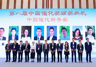 開(kāi)幕式上還頒發(fā)了“第八屆中國(guó)催化獎(jiǎng)”。北京大學(xué)謝有暢教授獲得“中國(guó)催化成就獎(jiǎng)”(冠名“張大煜獎(jiǎng)”);中國(guó)科學(xué)技術(shù)大學(xué)路軍嶺教授獲得“中國(guó)催化青年獎(jiǎng)”;廈門大學(xué)成康副教授、中國(guó)科學(xué)院上海高等研究院高鵬研究員、中科院大連化物所焦峰副研究員、浙江工業(yè)大學(xué)林麗利教授、中國(guó)科學(xué)技術(shù)大學(xué)劉進(jìn)勛研究員、北京化工大學(xué)邵明飛教授、北京大學(xué)王蒙副研究員、天津大學(xué)王悅研究員、浙江大學(xué)吳勤明副研究員、四川大學(xué)余達(dá)剛教授獲得“中國(guó)催化新秀獎(jiǎng)”。謝有暢代表獲獎(jiǎng)?wù)甙l(fā)表獲獎(jiǎng)感言并作了題為《自發(fā)單層分散理論:從基礎(chǔ)研究到工業(yè)應(yīng)用》的獲獎(jiǎng)報(bào)告。