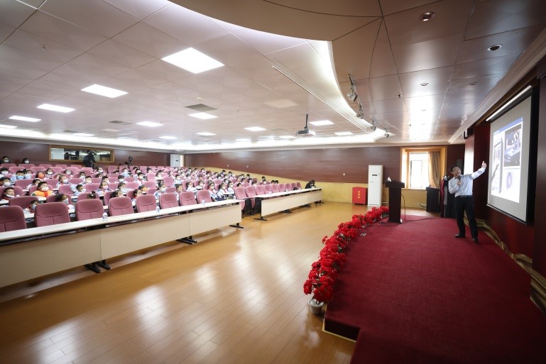 空間自動(dòng)化技術(shù)研究室副主任張偉研究員作了題為《逐夢九天 擁抱星辰大?!返目破請?bào)告。他首先向孩子們提出了問題,就是人類為什么要探索宇宙。隨后,他通過短片和豐富的圖片,講解了目前人類探索未知宇宙所采用的幾種技術(shù)手段,包括載人空間站等,以及在太空中使用的機(jī)器人與自動(dòng)化技術(shù)需要克服的主要技術(shù)難題。他還以與地球之間距離為線索,為孩子們講解了目前我國及世界上主要發(fā)達(dá)國家在月球、火星和小行星探測等方面所使用的科學(xué)探索技術(shù)。