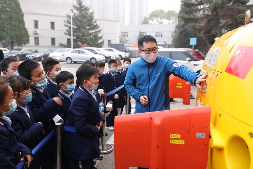 聆聽科研人員介紹“海斗一號(hào)”機(jī)器人