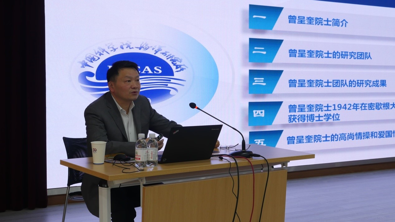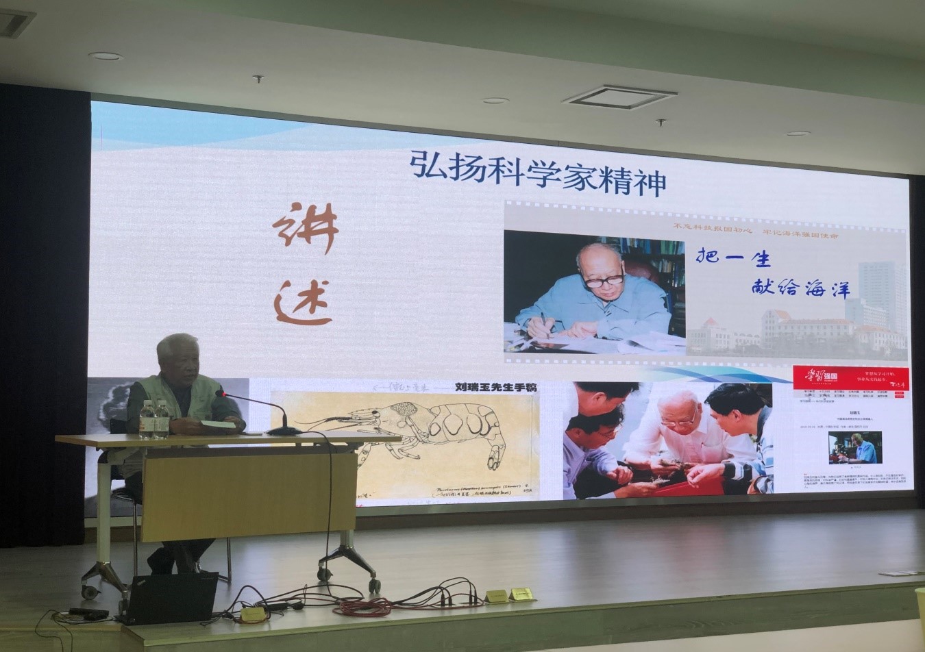王廣策同志作了題為“曾呈奎院士和他的研究團(tuán)隊(duì)”的主題報(bào)告,重溫了“愛國敬業(yè)、耕海澤農(nóng)、前瞻布局、甘為人梯”的曾呈奎科學(xué)精神,一起緬懷了曾呈奎院士始終心系人民、報(bào)效祖國,無私奉獻(xiàn)、奮發(fā)進(jìn)取,以促進(jìn)祖國發(fā)展為己任,全力投身國家海洋科教事業(yè)的感人事跡。報(bào)告結(jié)束時(shí),他指出,“時(shí)代輪替中,始終不變的是奮斗者的身姿;歷史坐標(biāo)上,始終清晰的是奮斗者的步伐”??茖W(xué)家精神是中國共產(chǎn)黨人精神譜系的組成部分,承載著黨的初心使命,中國夢的內(nèi)核就是由像曾呈奎先生等這樣一代代華夏兒女的奮斗與汗水熔鑄而成。大力弘揚(yáng)科學(xué)家精神,就是要深入貫徹落實(shí)習(xí)近平總書記重要指示批示精神,向以曾呈奎院士為代表的老一輩科學(xué)家們學(xué)習(xí),以咬定青山不放松的執(zhí)著奮力實(shí)現(xiàn)既定目標(biāo),不斷推進(jìn)我國海洋科技事業(yè)率先發(fā)展。