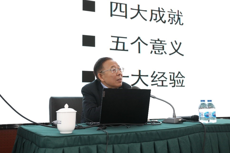 報(bào)告會(huì)上,孫學(xué)敏以《黨的百年奮斗重大成就和歷史經(jīng)驗(yàn)——學(xué)習(xí)黨的十九屆六中全會(huì)精神》為題作了專題報(bào)告,他通過介紹《中共中央關(guān)于黨的百年奮斗重大成就和歷史經(jīng)驗(yàn)的決議》的時(shí)代背景和意義,緊緊圍繞實(shí)現(xiàn)中華民族偉大復(fù)興這一主題,詳述建黨以來的三次飛躍和歷史成就,以及十個(gè)堅(jiān)持的歷史經(jīng)驗(yàn)。報(bào)告內(nèi)容詳實(shí)、理論與史料結(jié)合,為與會(huì)人員深入學(xué)習(xí)理解把握十九屆六中全會(huì)精神提供了指導(dǎo)。