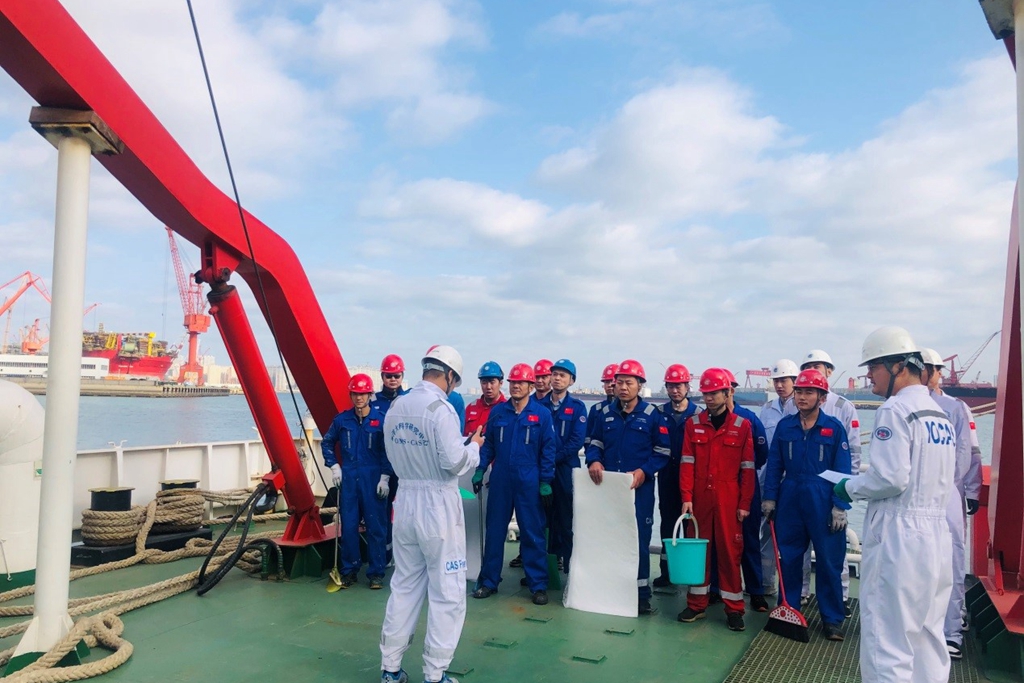 于云剛船長(zhǎng)從法規(guī)要求、船舶管理部門(mén)職責(zé)、船舶油污應(yīng)急計(jì)劃、油污應(yīng)急行動(dòng)流程等九方面做了講解。船舶運(yùn)維部、工程技術(shù)部、園區(qū)物業(yè)及“科學(xué)三號(hào)”、“創(chuàng)新二”號(hào)工作人員參加培訓(xùn)。