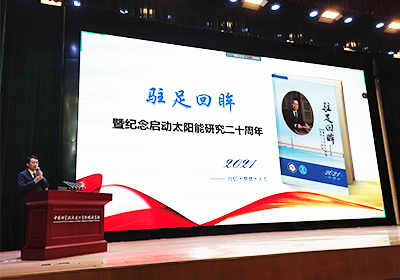 太陽能研究部李仁貴研究員作為團(tuán)隊成員代表,作了題為“逐夢追光二十載——紀(jì)念太陽能研究二十周年”的報告,分別從歷史回顧、重要時間節(jié)點的代表性工作與事件、取得的研究成果概述、未來展望等四個方面,回顧了大連化物所太陽能研究從零開始到今天的發(fā)展歷程。