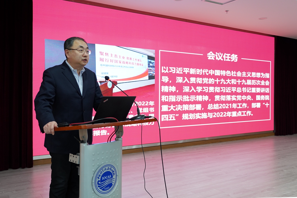 所長王凡作專題報告,從“習近平總書記和中央領導同志對我院重要指示批示” “一年來科技創(chuàng)新和改革發(fā)展取得成效” “新形勢下面臨任務與總體要求” “2022年主要工作思路”四個方面,詳細傳達學習了侯建國院長在中科院2022年度工作會議上的報告精神,并結合國際國內(nèi)形勢以及海洋領域發(fā)展態(tài)勢,深入剖析了研究所創(chuàng)新發(fā)展面臨的問題和挑戰(zhàn)。