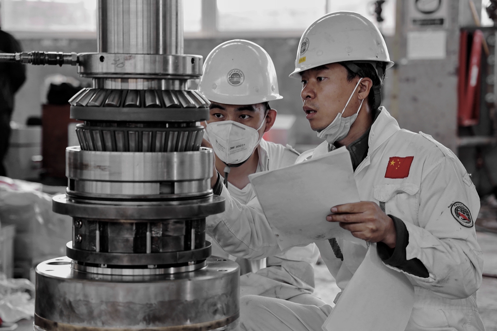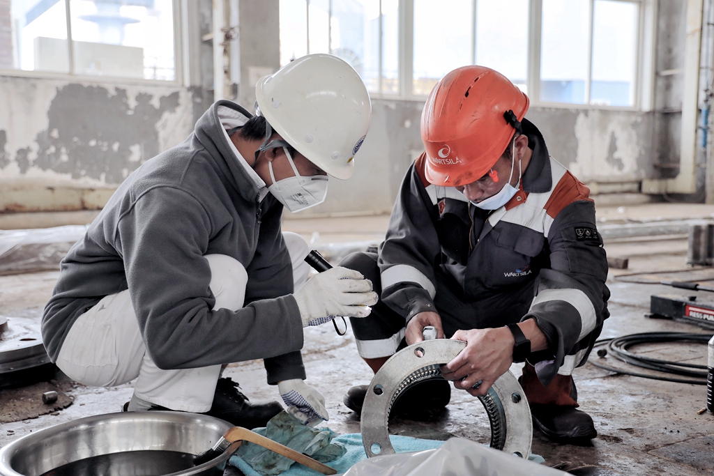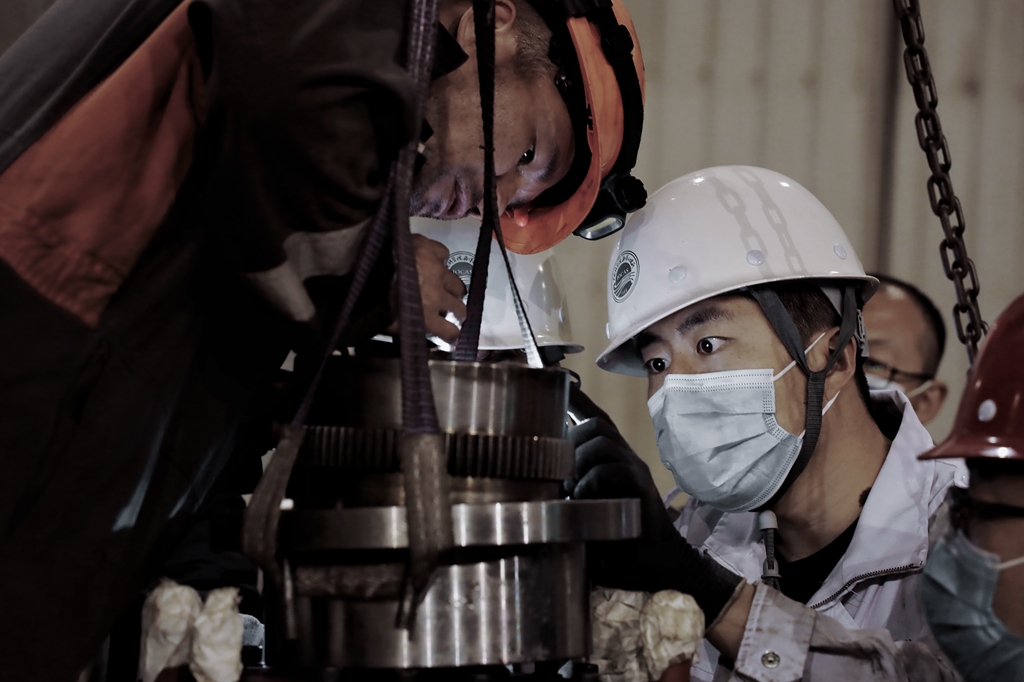 工作人員加班加點(diǎn)對瓦西蘭首側(cè)推裝置進(jìn)行拆解維護(hù)
