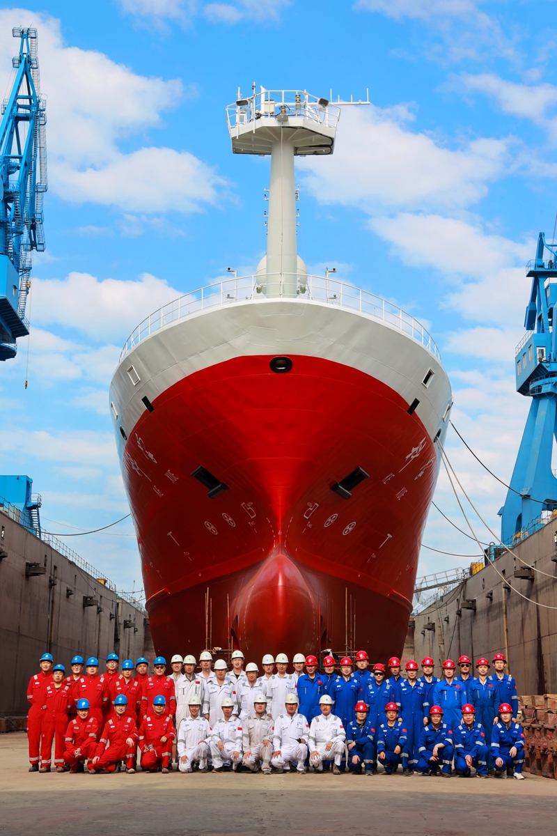 全體塢修工作人員與嶄新的“科學(xué)”號合影留念
