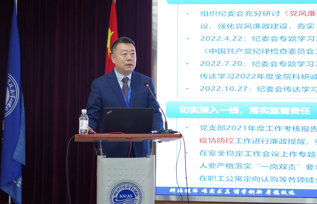 會上,海洋所黨委書記、副所長王輝,黨委副書記、紀(jì)委書記畢偉,副所長沙忠利,分別就個人分管工作做專題工作報告和個人述職述廉。7個研究單元負(fù)責(zé)人分別匯報了實驗室2022年重點工作完成情況及2023年工作思路。