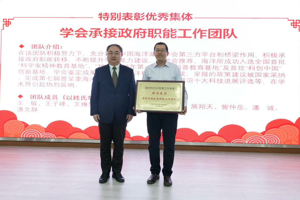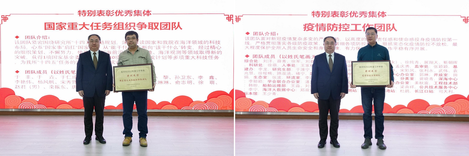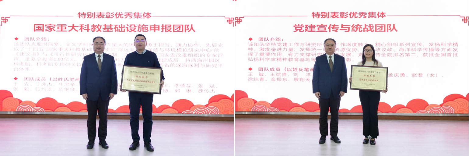 會上宣讀了研究所2022年度重大成果、獲得所外各類榮譽獎項以及年度考核優(yōu)秀集體和個人的通知,對獲獎集體和個人進(jìn)行了表彰,并公布了海洋所2022年度十件大事評選結(jié)果。