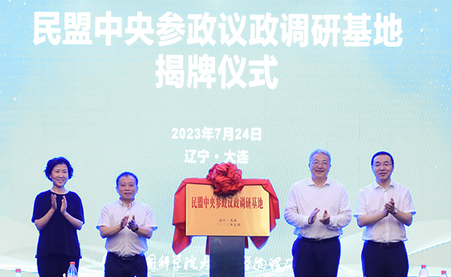 7月24日,民盟中央?yún)⒄h政(遼寧大連)調(diào)研基地揭牌儀式在中國科學院大連化學物理研究所舉行。全國政協(xié)副主席、民盟中央常務副主席王光謙,遼寧省政協(xié)副主席、民盟遼寧省委會主委劉中民,遼寧省委統(tǒng)戰(zhàn)部副部長張佩棟,大連市委常委、統(tǒng)戰(zhàn)部部長徐廣湘,大連化物所黨委書記金玉奇,民盟中央副秘書長張峰等出席揭牌儀式。儀式由民盟遼寧省委會專職副主委連家明主持。