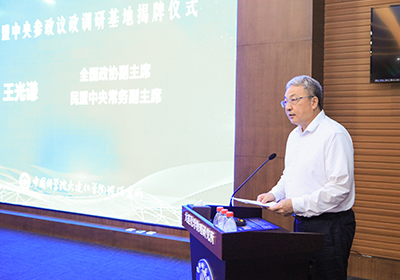 王光謙、劉中民、張佩棟、徐廣湘共同為民盟中央?yún)⒄h政調(diào)研基地揭牌。