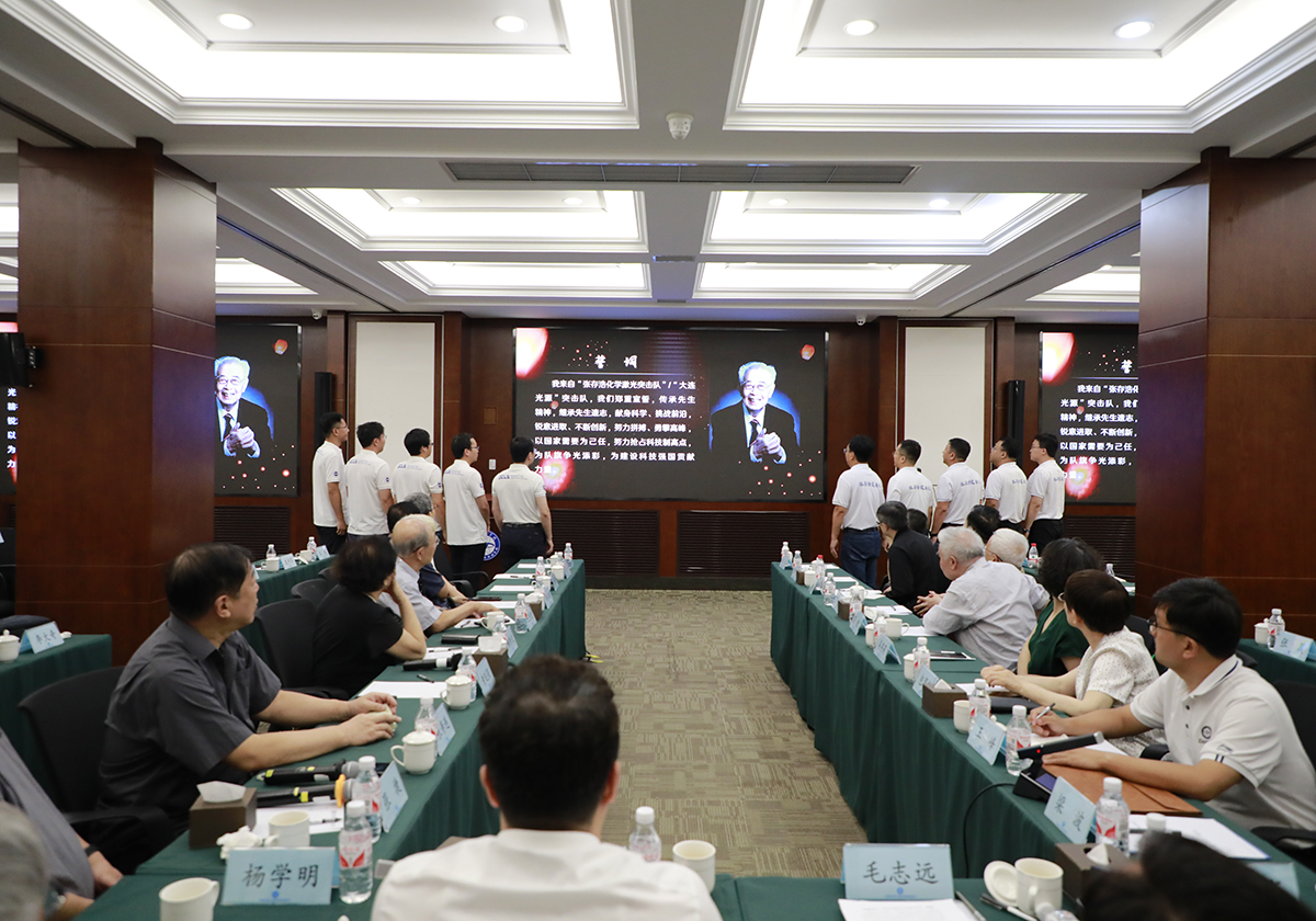最后,追思會“傳承”環(huán)節(jié)上,大連化物所“張存浩化學激光突擊隊”和“大連光源突擊隊”代表現(xiàn)場重溫了誓詞:“我們鄭重宣誓,傳承先生精神,繼承先生遺志,獻身科學、挑戰(zhàn)前沿,銳意進取、不斷創(chuàng)新,努力拼搏、勇攀高峰,以國家需要為己任,努力搶占科技制高點,為隊旗增光添彩,為建設(shè)科技強國貢獻力量?!笔难藻P錚,矢志報國,以張存浩先生精神為引領(lǐng),為建設(shè)科技強國竭盡全力,這是對張存浩精神最好的傳承與發(fā)揚,也是對先生最好的追思和懷念。