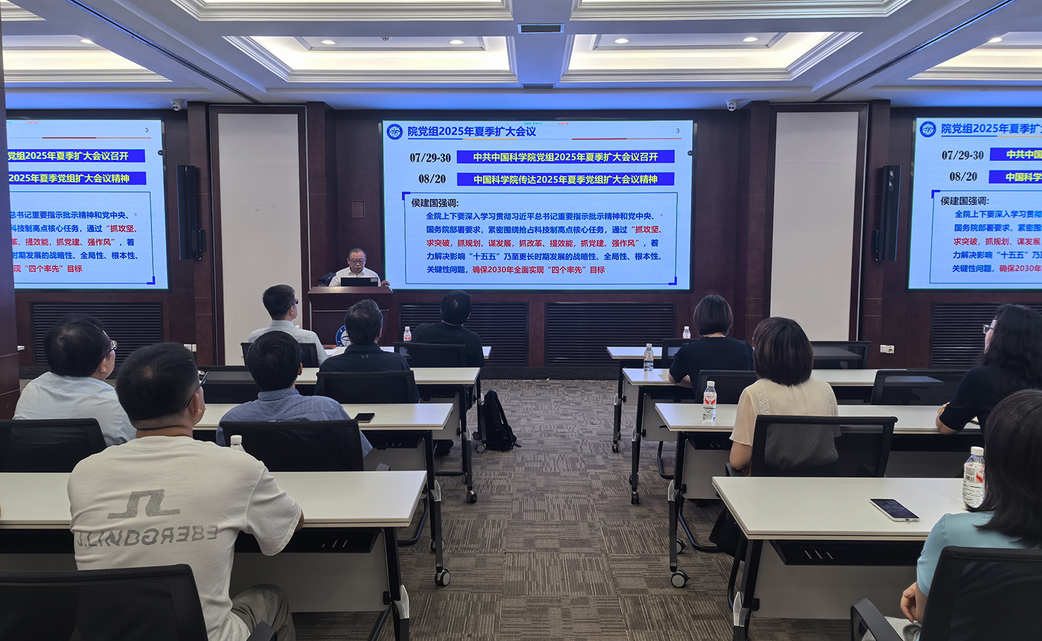 會(huì)上,劉中民全面?zhèn)鬟_(dá)了院黨組2025年夏季擴(kuò)大會(huì)議精神,通報(bào)了研究所在搶占科技制高點(diǎn)、推動(dòng)全所改革創(chuàng)新發(fā)展重要舉措等方面的重要工作,對(duì)“十五五”規(guī)劃編制、組織凝練重大科技項(xiàng)目等重點(diǎn)工作進(jìn)行了全面部署,并就科研經(jīng)費(fèi)管理進(jìn)行了廉政提醒。