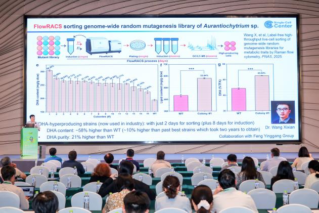 研究所在光合微生物領(lǐng)域的多項(xiàng)突破性成果在會議期間備受關(guān)注。呂雪峰就藍(lán)細(xì)菌制備甘油葡糖苷技術(shù)的開發(fā)和產(chǎn)業(yè)化應(yīng)用進(jìn)展作邀請報告,引起廣泛反響;徐健研究員、張永雨研究員、朱濤副研究員分別就藻類高通量單細(xì)胞拉曼分選、藻菌互作與海洋碳匯、藍(lán)細(xì)菌CRISPR轉(zhuǎn)錄調(diào)控等方向的最新進(jìn)展作口頭報告,展現(xiàn)了青島能源所在相關(guān)領(lǐng)域系統(tǒng)的科研布局和扎實(shí)的科研實(shí)力。