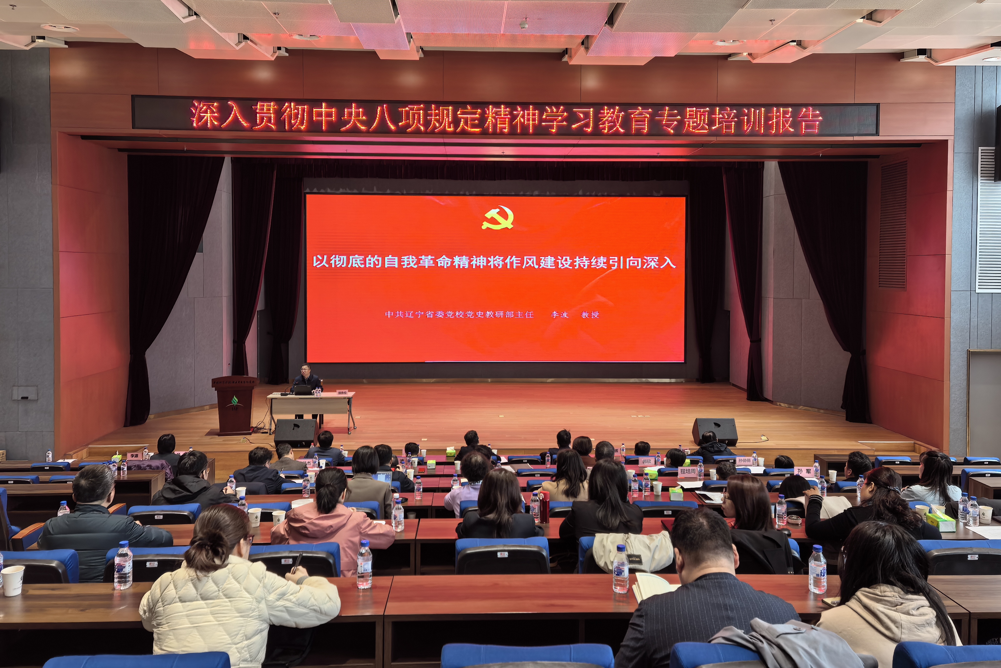 會(huì)議還邀請(qǐng)遼寧省委黨校黨史教研部主任李波教授作《徹底的自我革命精神將作風(fēng)建設(shè)持續(xù)引向深入》深入貫徹中央八項(xiàng)規(guī)定精神學(xué)習(xí)教育專題培訓(xùn)報(bào)告,進(jìn)一步推動(dòng)系統(tǒng)各單位黨員領(lǐng)導(dǎo)干部帶頭嚴(yán)格落實(shí)中央八項(xiàng)規(guī)定及其實(shí)施細(xì)則精神,引領(lǐng)系統(tǒng)各單位黨委推進(jìn)學(xué)習(xí)教育工作取得實(shí)效。
